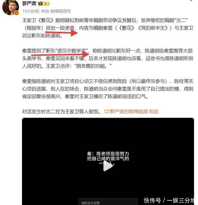 靳东,无妄之灾。 2025年9月,编剧古二曝光了一段私密录音。 靳东的陈年旧梗,“诺贝尔数学奖”再次推上热搜。 录音中,秦雯与王家卫的调侃带着几分轻蔑。