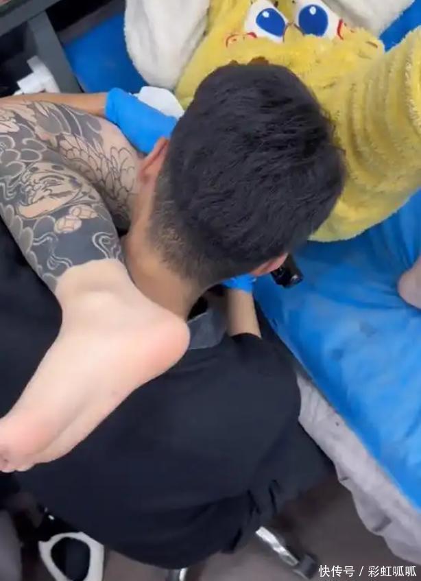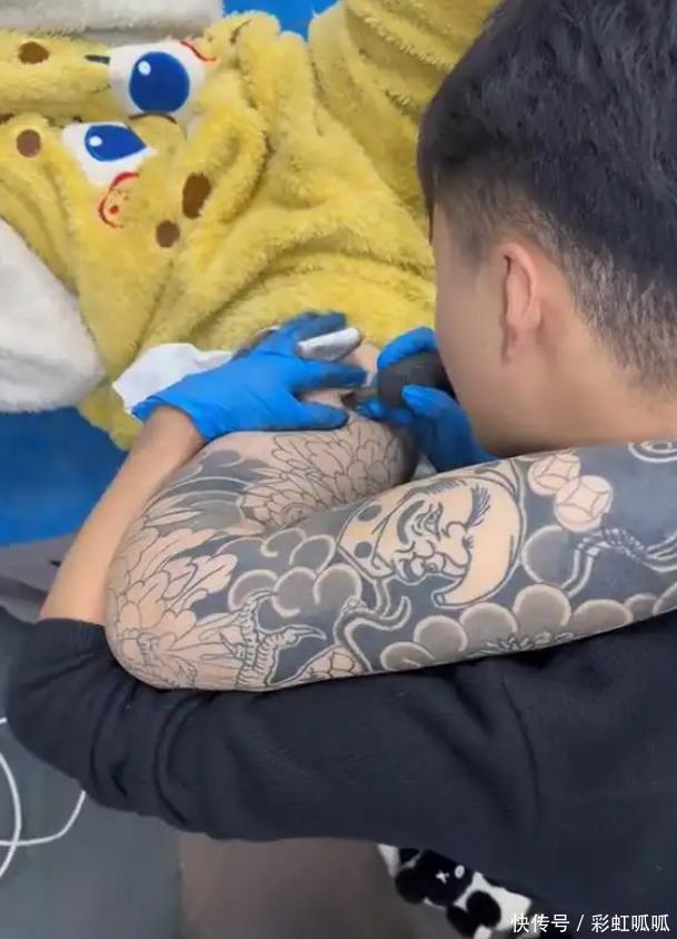 纹身师傅一边操作,一边时不时观察她的状态:“再坚持会儿,外侧快好了,内侧会更疼一点,你要是扛不住就吱声。”
